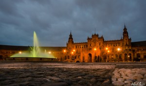 Seville Spain Plaza de Espana Fountain Night